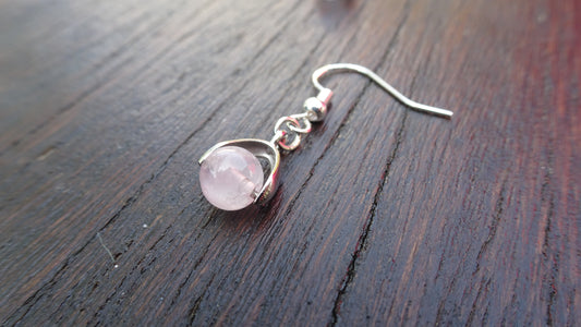 Boucles d'oreilles perle naturelle rose 6mm posée sur étrier argenté - BO143