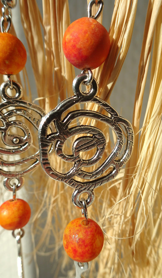 BOUCLES D'OREILLES PERLES NATURELLES ORANGES - BO120