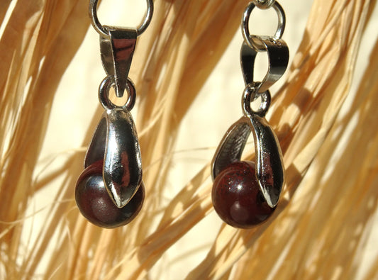 Boucles d'oreilles perle naturelle marron 6 mm, posée sur étrier argenté - BO129/E6