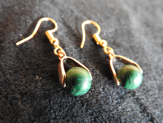 Boucles d'oreilles pierre naturelle vert émeraude posée sur étrier doré - BO050/ver