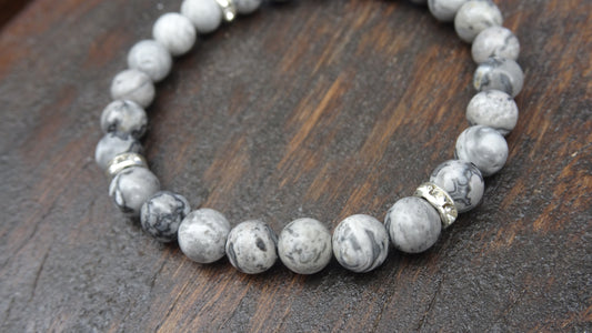 Bracelet perles naturelles 6 mm grises - BR156