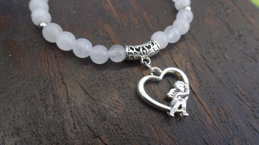 Bracelet perles naturelles facettées 8 mm blanc rosé - BR180*