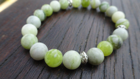 Bracelet perles naturelles 8mm vert tilleul - BR136