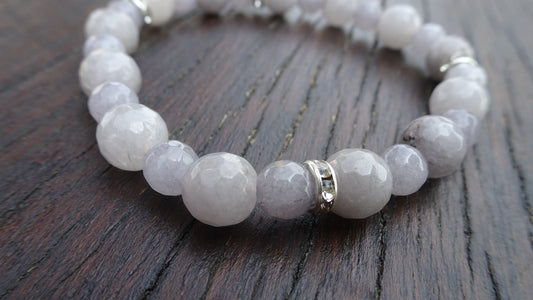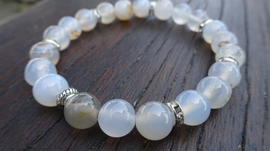Bracelet perles naturelles 8mm blanc translucide - BR139