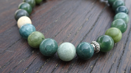 Bracelet perles naturelles 8 mm vert foncé - BR145