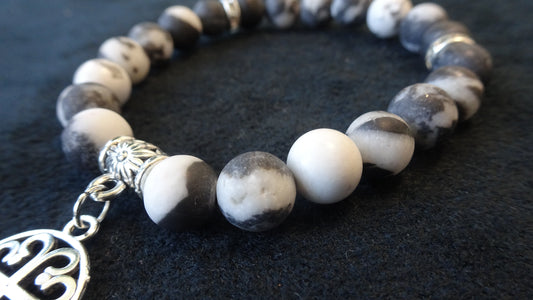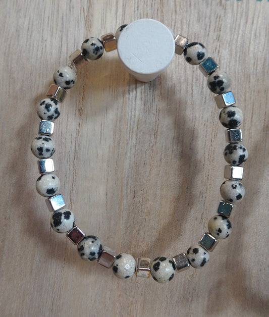 Bracelet en pierres naturelles noires et blanches - BR079