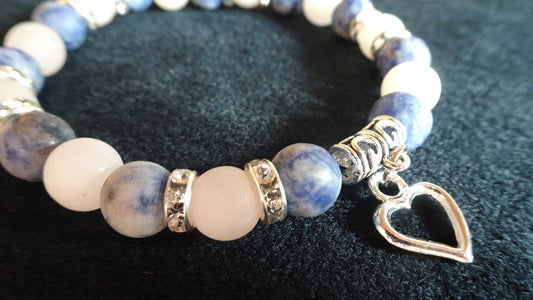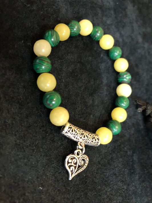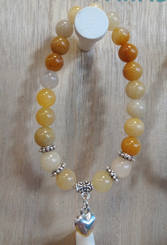 Bracelet en perles naturelles et coeur stylisé argenté - BR016